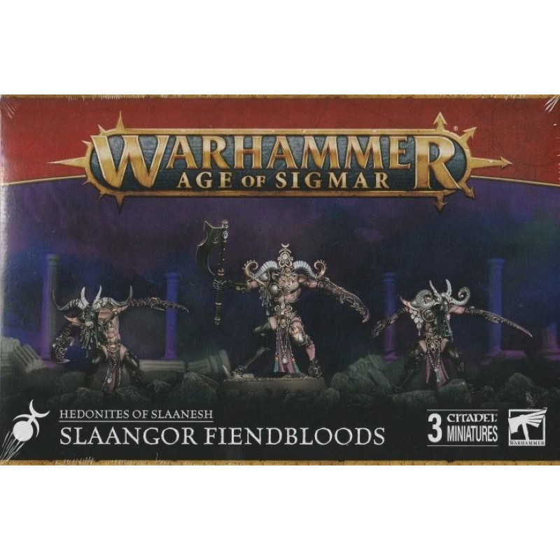 This kit comprises 37 plastic components, with which you can assemble 3x Slaangor Fiendbloods miniatures (one of which can be the unit’s leader, a Slake-Horn), each supplied with a Citadel 40mm Round Base.