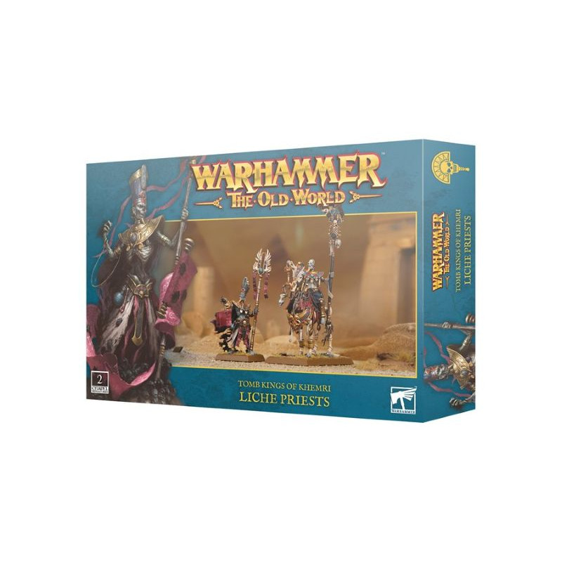 Liche Priests are the undying members of Nehekhara’s Mortuary Cult and holders of the secrets to unlife. They perform the rituals necessary to draw spirits from the Realm of Souls and bind them once more into corporeal bodies, rousing the Tomb Kings and their courts from their slumber, and awakening their armies for war.